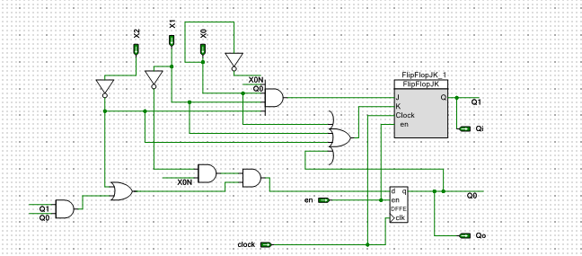 Después de obtener este diagrama, con sus correspondientes transiciones, se procede a hacer mapas de Karnaugh para cada Q*( Q0* Y Q1*) y para la salida en general, que seria la responsable de prender el led, indicando que efectivamente la secuencia fue reconocida con éxito.